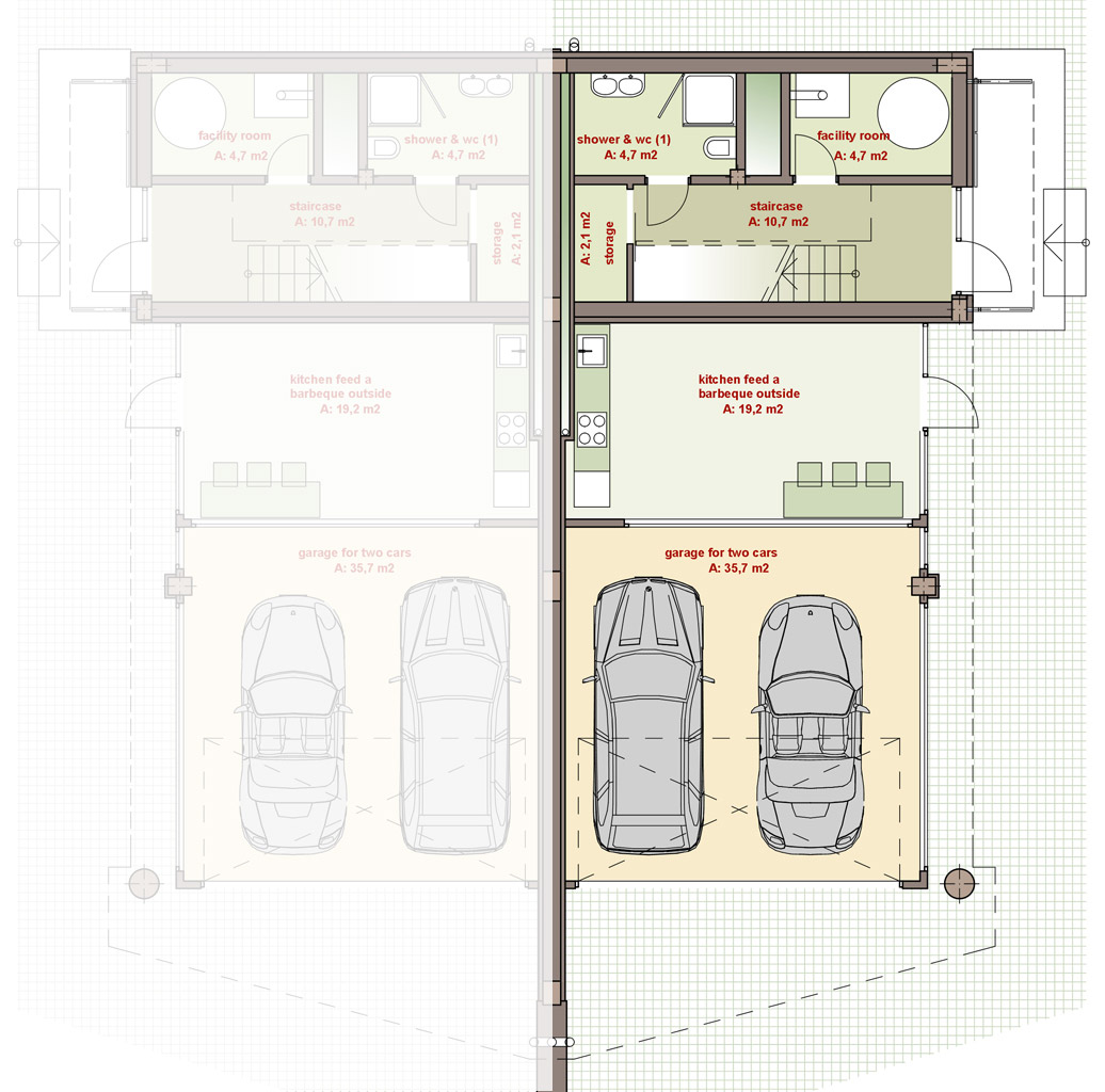 - For exterior basic model see PROJECT / Gallery RESIDENCE COMPLEX - For modification of the design and the scheme "custom made residence" see section SUSTAINABILITY & modifications